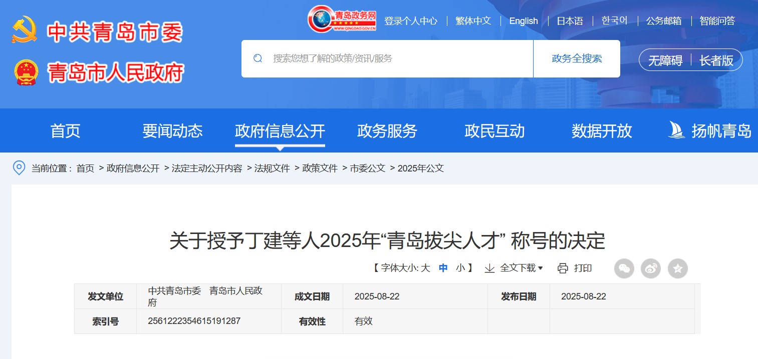 喜報!我所3名同志被授予2025年“青島拔尖人才”稱號