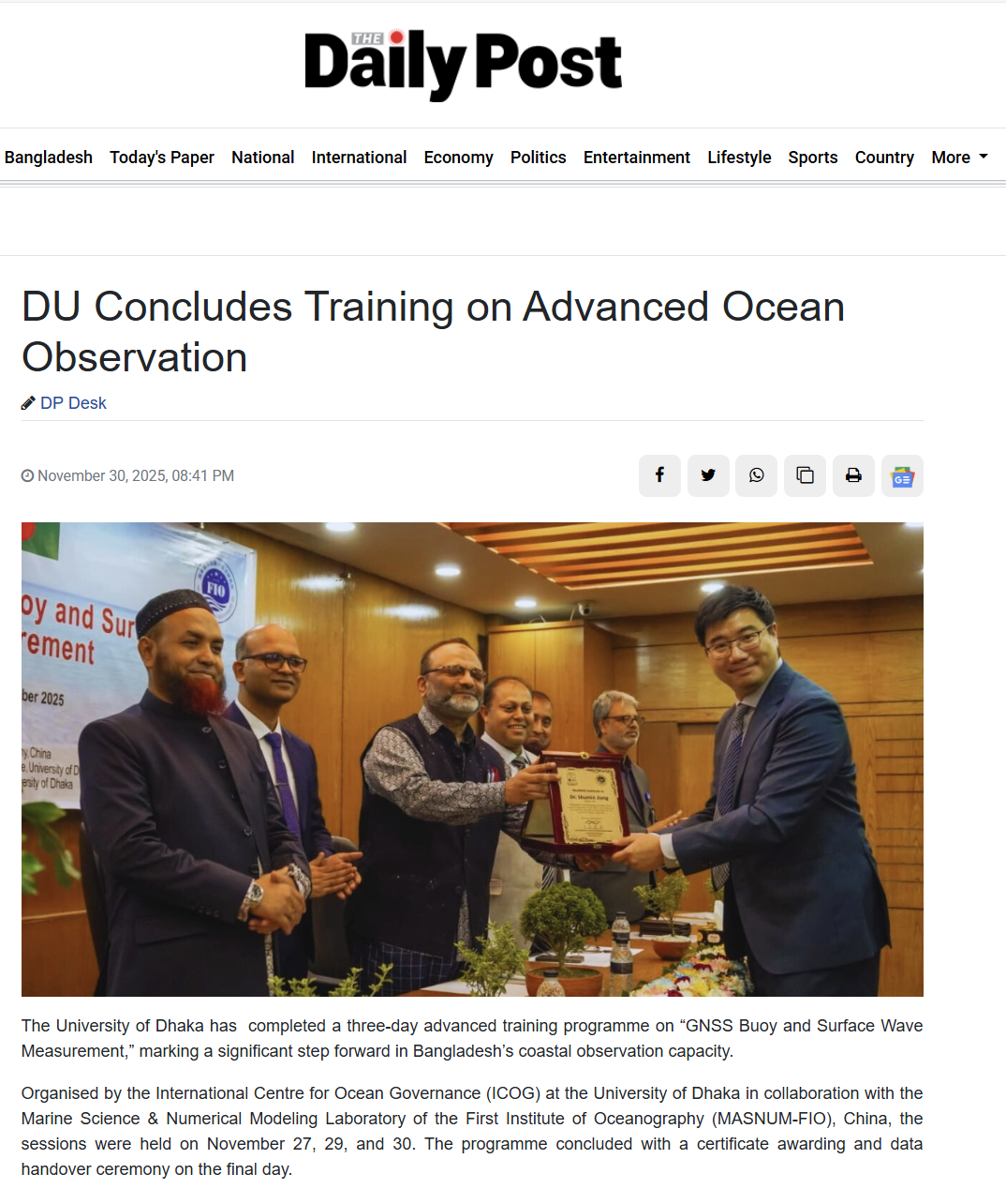 我所在達(dá)卡大學(xué)舉辦“GNSS浮標(biāo)與海浪觀測(cè)”技術(shù)培訓(xùn)
