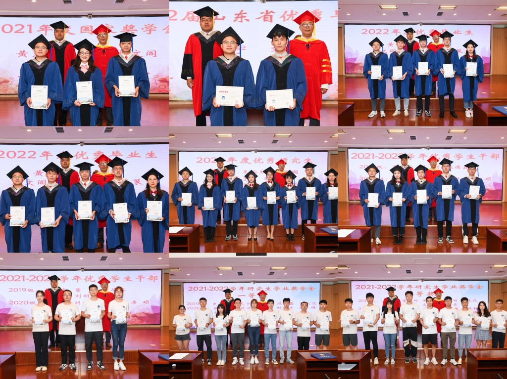 儀式最后,所領(lǐng)導(dǎo)為2021年度國(guó)家獎(jiǎng)學(xué)金獲得者、2022屆山東省優(yōu)秀畢業(yè)生、2022屆優(yōu)秀研究生、2022年度優(yōu)秀研究生、2021-2022學(xué)年優(yōu)秀學(xué)生干部、2021-2022學(xué)年一、二、三等學(xué)業(yè)獎(jiǎng)學(xué)金獲得者頒獎(jiǎng)。
