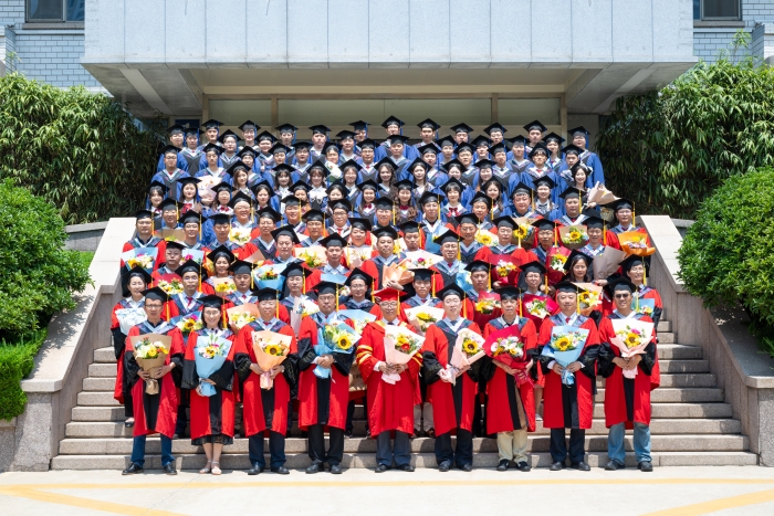 儀式結(jié)束后,所領(lǐng)導(dǎo)、導(dǎo)師和畢業(yè)生們集體合影留念。