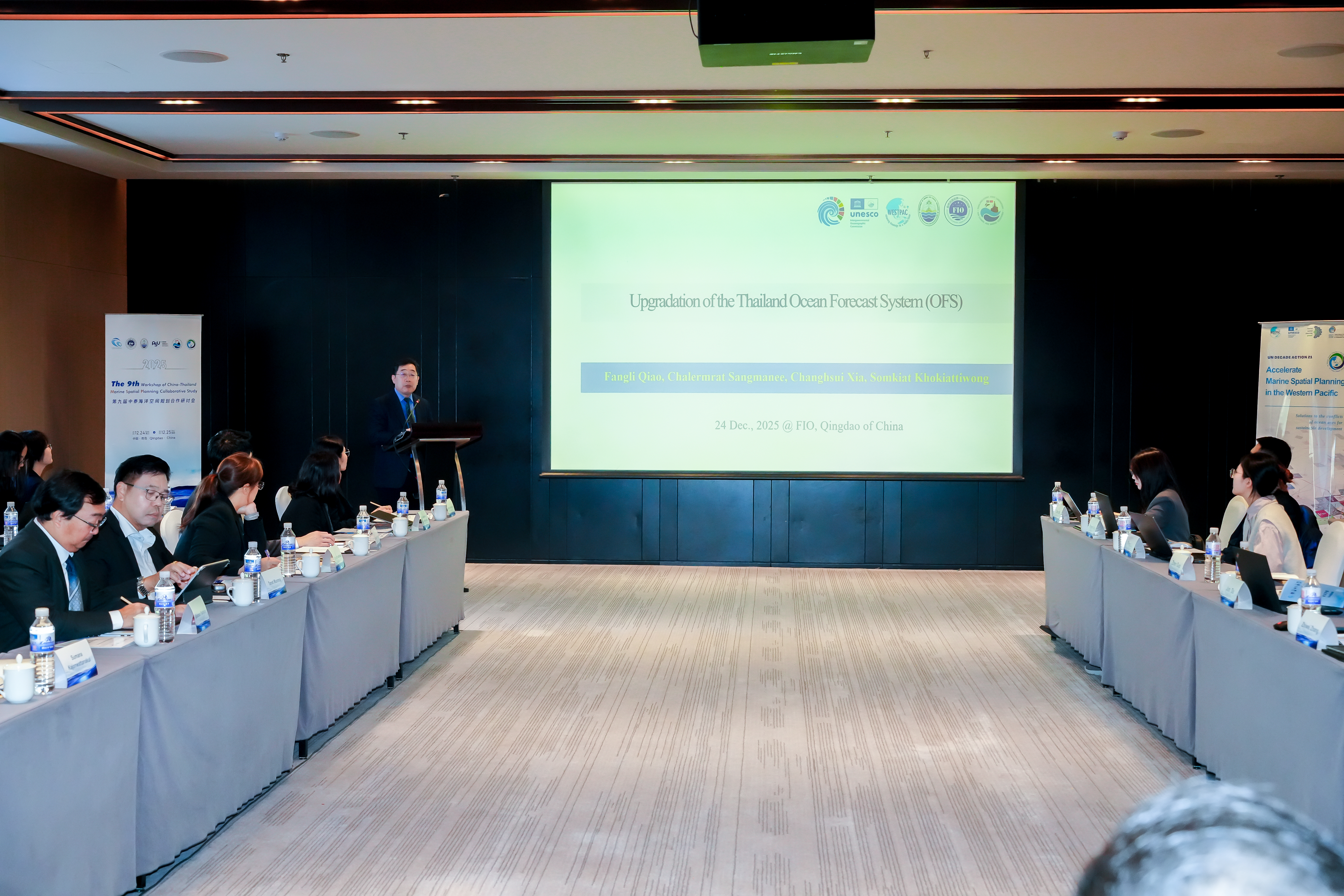 為總結(jié)“中泰海洋與極地合作月”活動(dòng)成果,中國(guó)自然資源部與泰國(guó)自然資源與環(huán)境部12月24日在青島舉辦了“中泰海洋與極地合作月”收官儀式和專題研討會(huì),來自中泰雙方自然資源、海洋、環(huán)境領(lǐng)域的40余名嘉賓參會(huì),中國(guó)自然資源部國(guó)際合作司副司長(zhǎng)王安濤、泰國(guó)自然資源與環(huán)境部海洋與海洋資源司司長(zhǎng)Pinsak Suraswadi分別代表中泰雙方致辭。與會(huì)嘉賓回顧并總結(jié)了2025年2—11月中泰雙方聯(lián)合舉辦的11項(xiàng)慶?;顒?dòng),同時(shí)發(fā)布了中泰海洋合作百篇優(yōu)秀論文集,啟動(dòng)了泰國(guó)普吉和羅勇海洋綜合監(jiān)測(cè)站,舉辦了泰國(guó)海洋預(yù)報(bào)系統(tǒng)升級(jí)儀式。研討會(huì)期間,中泰雙方將高分辨率海洋預(yù)報(bào)系統(tǒng)建設(shè)、海洋空間規(guī)劃合作、《〈聯(lián)合國(guó)海洋法公約〉下國(guó)家管轄范圍以外區(qū)域海洋生物多樣性的養(yǎng)護(hù)和可持續(xù)利用協(xié)定》框架下的海洋生態(tài)合作等三項(xiàng)內(nèi)容列為后期優(yōu)先合作事宜,并對(duì)合作計(jì)劃和實(shí)施方案達(dá)成了高度共識(shí)。