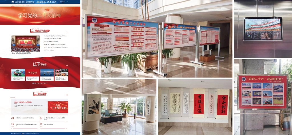 我所把網(wǎng)絡(luò)傳播平臺(tái)作為黨的二十大精神宣傳的重要陣地,通過所官網(wǎng)、微信公眾號(hào)等方式大力宣傳黨的二十大精神,宣傳我所學(xué)習(xí)貫徹黨的二十大精神的具體舉措和實(shí)際行動(dòng)。我所在所官網(wǎng)開設(shè)學(xué)習(xí)黨的二十大精神專題網(wǎng)頁,在所區(qū)布置學(xué)習(xí)黨的二十大精神的宣傳展板,在各辦公樓電梯間播放學(xué)習(xí)視頻,在所屬各黨支部設(shè)置學(xué)習(xí)黨的二十大精神專欄,組織學(xué)習(xí)黨的二十大精神專題書畫攝影比賽、系列職工活動(dòng),積極營(yíng)造學(xué)習(xí)宣傳貫徹黨的二十大精神的濃厚氛圍。